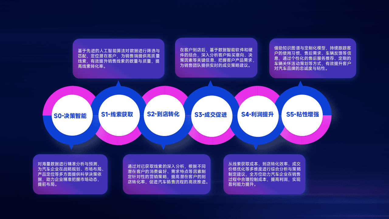 通过拓宽潜在客户来源、、优化线索分配并提高到店转化率,,,,以增强销售效率。。。。同时,,,,利用线索数据不断优化分析模型,,,有效提升转化率,,扩大营销影响力。。。。